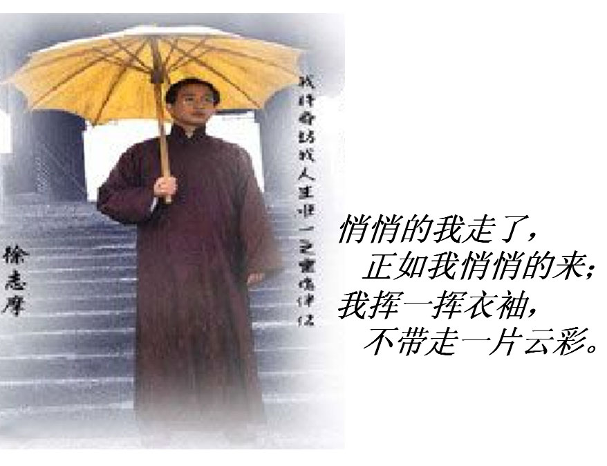 徐志摩(1897~1931年)现代诗人、散文家。浙江海宁县硖石镇人。名章垿,小字槱森,后改名志摩。曾经用过的笔名:南湖、云中鹤。1897年出生,至1931年飞机出事,生活了35年,英年早逝。原名徐章垿,为什么改名叫徐志摩呢?因为他小时候特别可爱,清末时长着一个大脑袋,留着一个"猪尾巴",所以他的父亲就请了一个名叫志慧的和尚看相,说是将来必成大器。所以1928年,他出国时改名"徐志摩"——志慧和尚摸过的。
